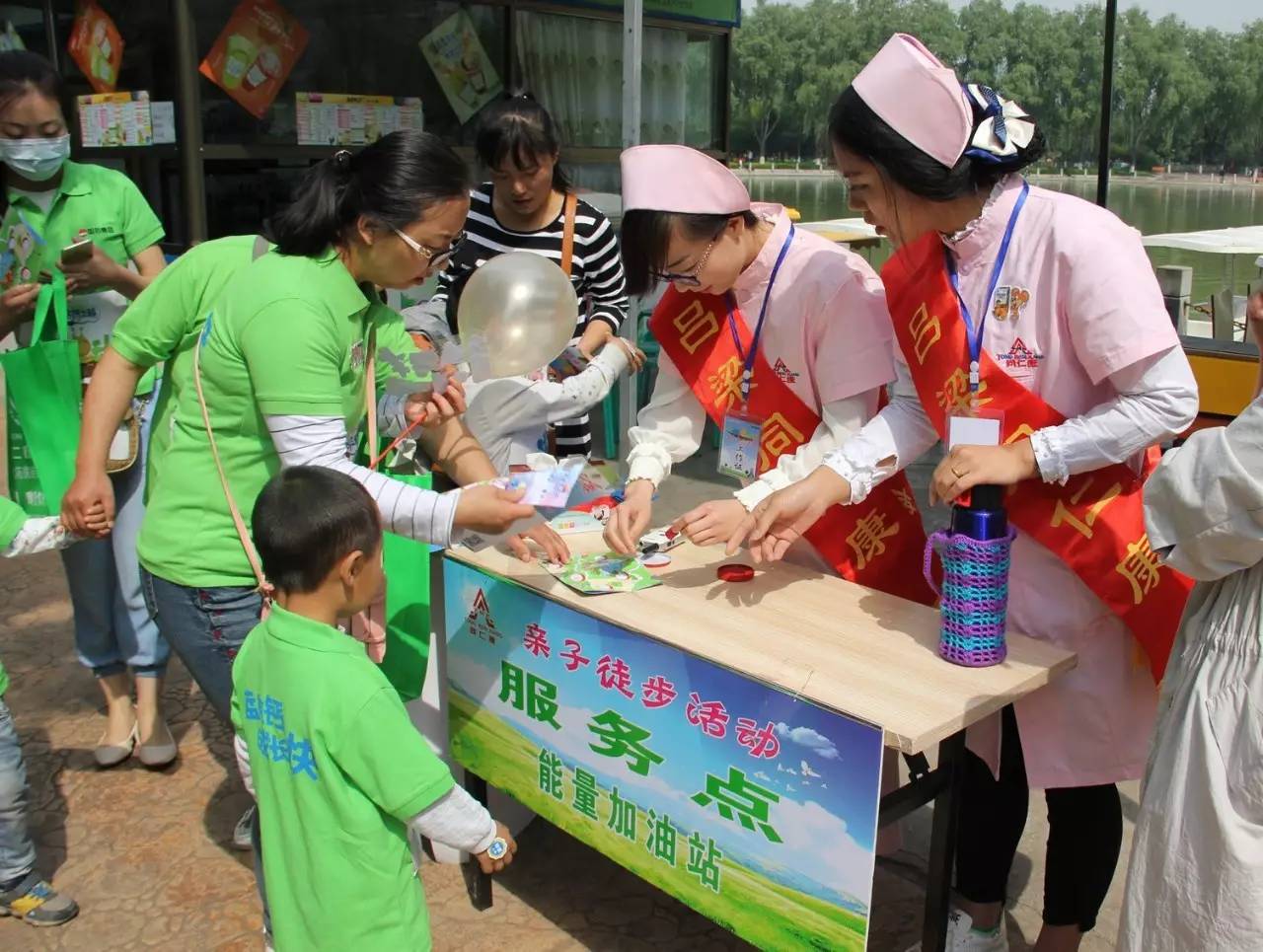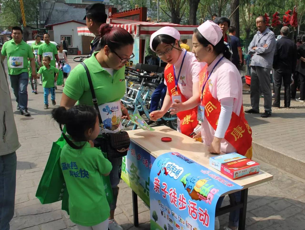 工作組現場簽到并發(fā)放親子裝