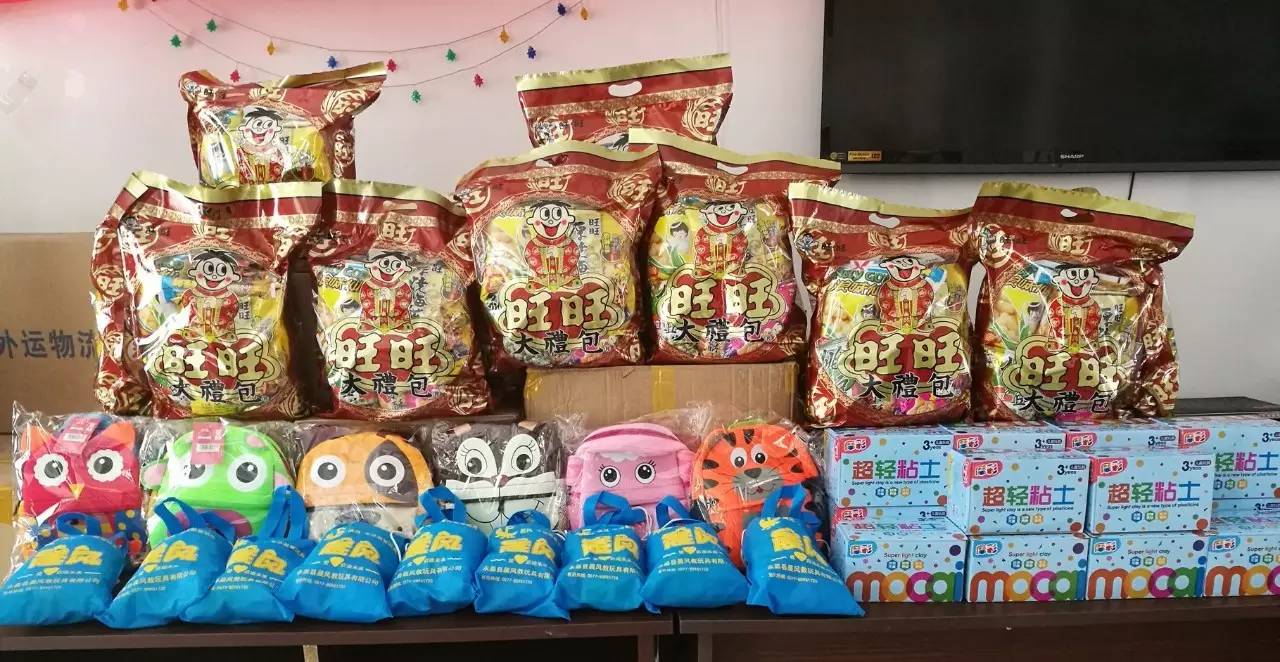 孩子們背著小書包、吃著旺旺食品、看著做好的玩具,小臉上滿滿的幸福?。?!而我們也覺得很快樂、很滿足、很幸福!